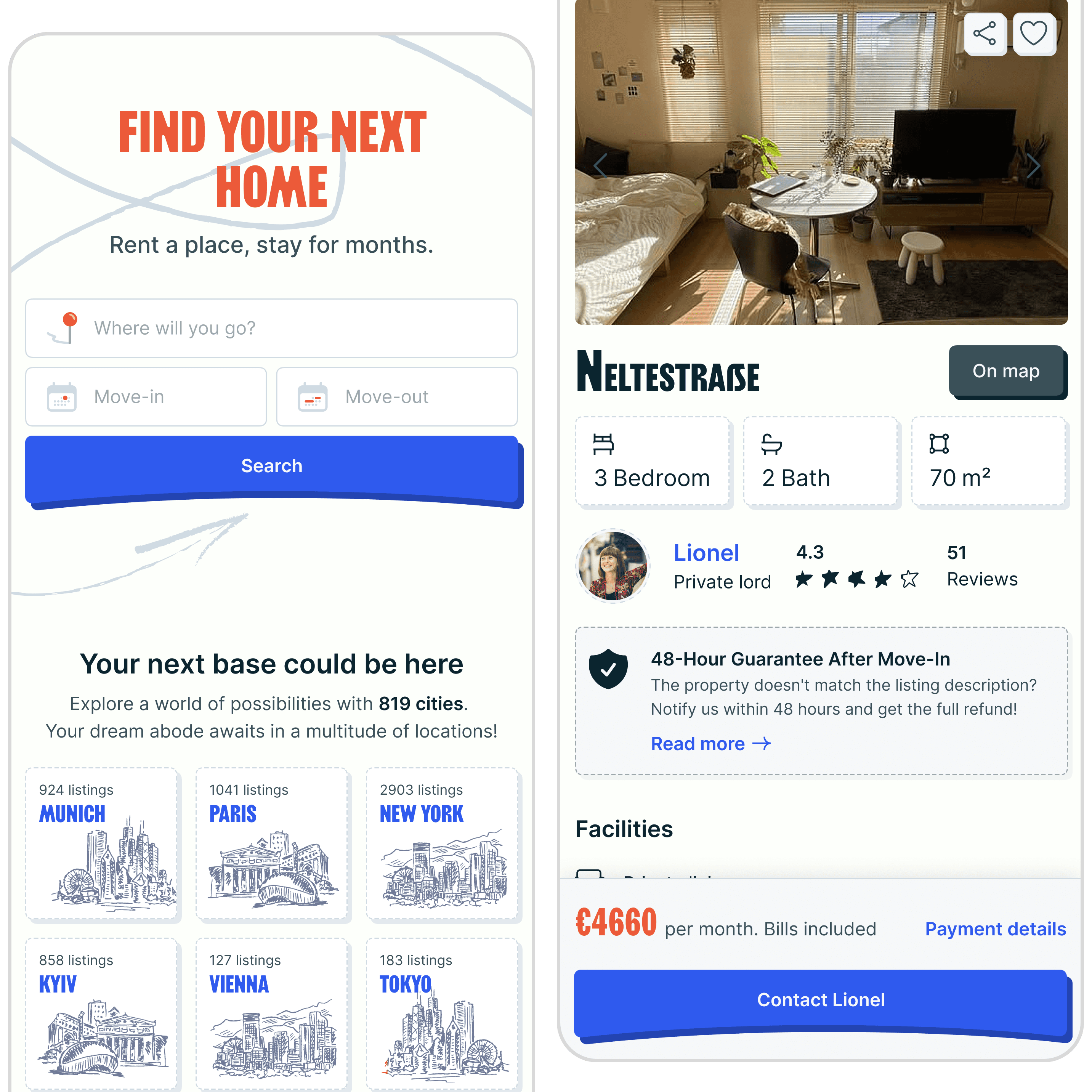 At Housing Anywhere we started on a rebranding initiative. Before the full switch, we conducted a design exercise to explore how radically the rebranding could transform our interface.